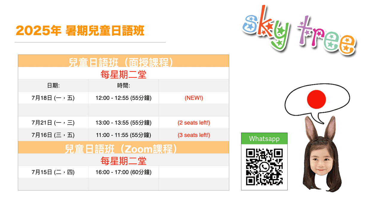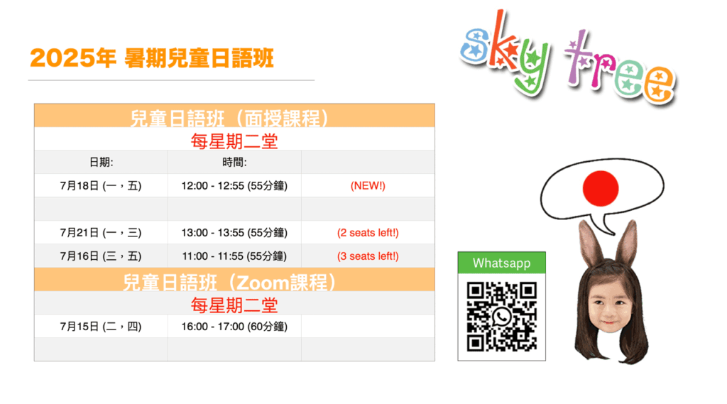 2025兒童日語暑期班(適合完全未學過日語 3 - 11 歲小朋友)加開7月18日新班!